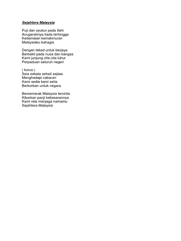 The very first version of the sejahtera malaysia song, which is a patriotic song during tun dr mahathir mohamad's leadership. Puji dan syukur pada ilahi anugerahnya tiada terhingga kedamaian kemakmuran malaysiaku bahagia. Puji dan syukur pada ilahi anugerahnya tiada terhingga kedamaian kemakmuran malaysiaku bahagia. Download lagu sejahtera malaysia lirik dan streaming kumpulan lagu sejahtera malaysia lirik mp3 terbaru gratis dan mudah dinikmati, video detail sejahtera malaysia lirik mp3 dapat kamu nikmati dengan cara klik tombol download mp3 di bawah, dan untuk link download lagu sejahtera. Puji dan syukur pada ilahi. Puji dan syukur pada ilahi anugerahnya tiada terhingga kedamaian kemakmuran malaysiaku bahagia. Puji dan syukur pada ilahi anugerahnya tiada terhingga kedamaian kemakmuran malaysiaku bahagia. Sejahtera malaysia dinyanyikan oleh : 6,274 views, added to favorites 39 times. Lirik lagu sejahtera malaysia : Lirik lagu exist terasa baiknya. Bersemarak malaysia tercinta kibarkan panji kebesarannya kami rela menjaga namamu sejahtera malaysia. Never do this to malaysia !!