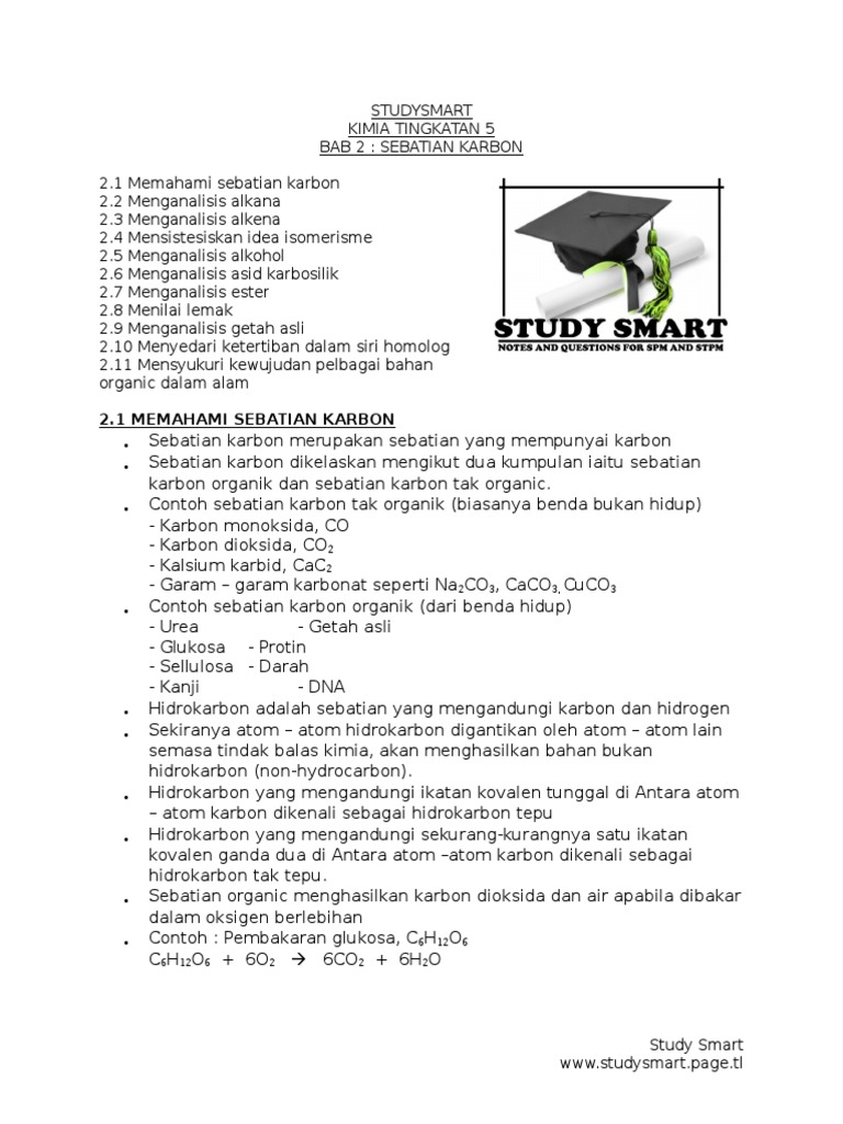 Nota kimia tingkatan 5 kssm bab 2 sebatian karbon.